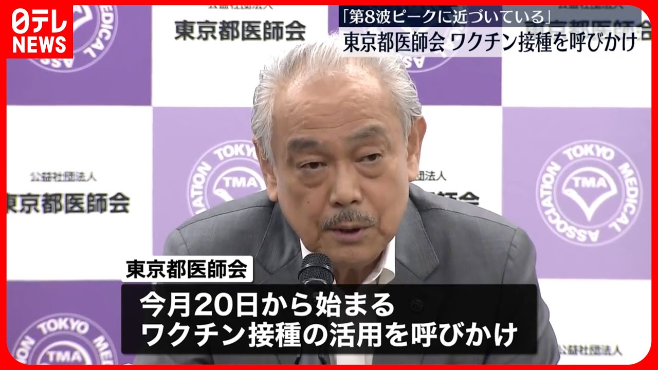 20日午後の会見で東京都医師会の尾崎会長は、新型コロナの感染者数について、「第8波のピークに近づいている」と述べました。