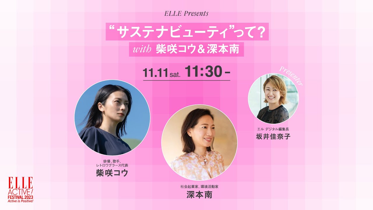 出演:柴咲コウ(俳優、歌手、レトロワグラース代表)、深本 南(社会起業家、環境活動家)、坂井佳奈子(エル デジタル編集長)