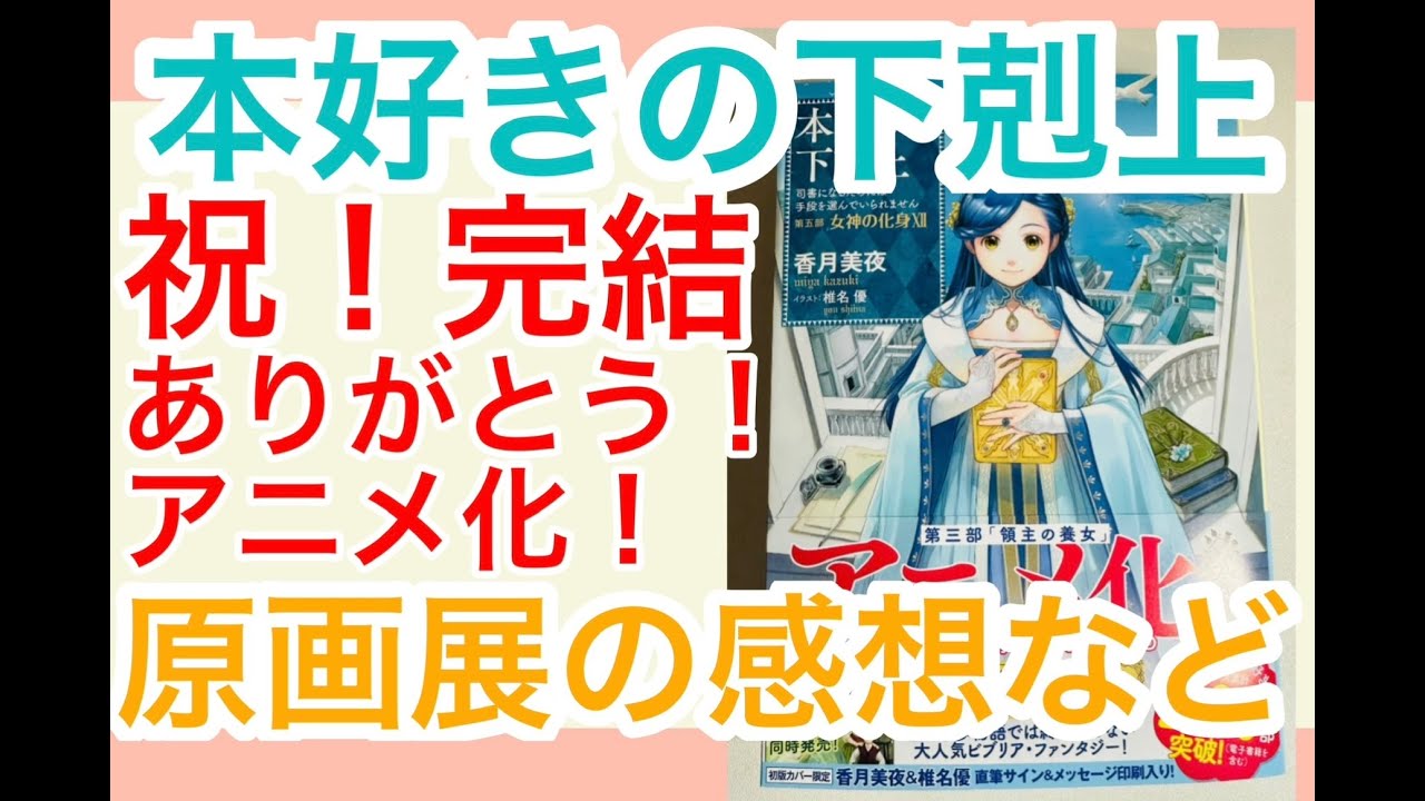今回は、本好きの下剋上の最終巻発売のお祝いです。 本好きの下剋上原画展にも行ってきたのでその感想も少し入れました。 ますます盛り上がる本好きを、少しでもみんなで共有できたらうれしいです。本好きの下剋上原画展 https://chara-art.online/event/honzuki/ Ascendance of a Bookworm原画展本好きの下剋上本好きの下剋上 司書になるためには手段を選んでられません 第3部