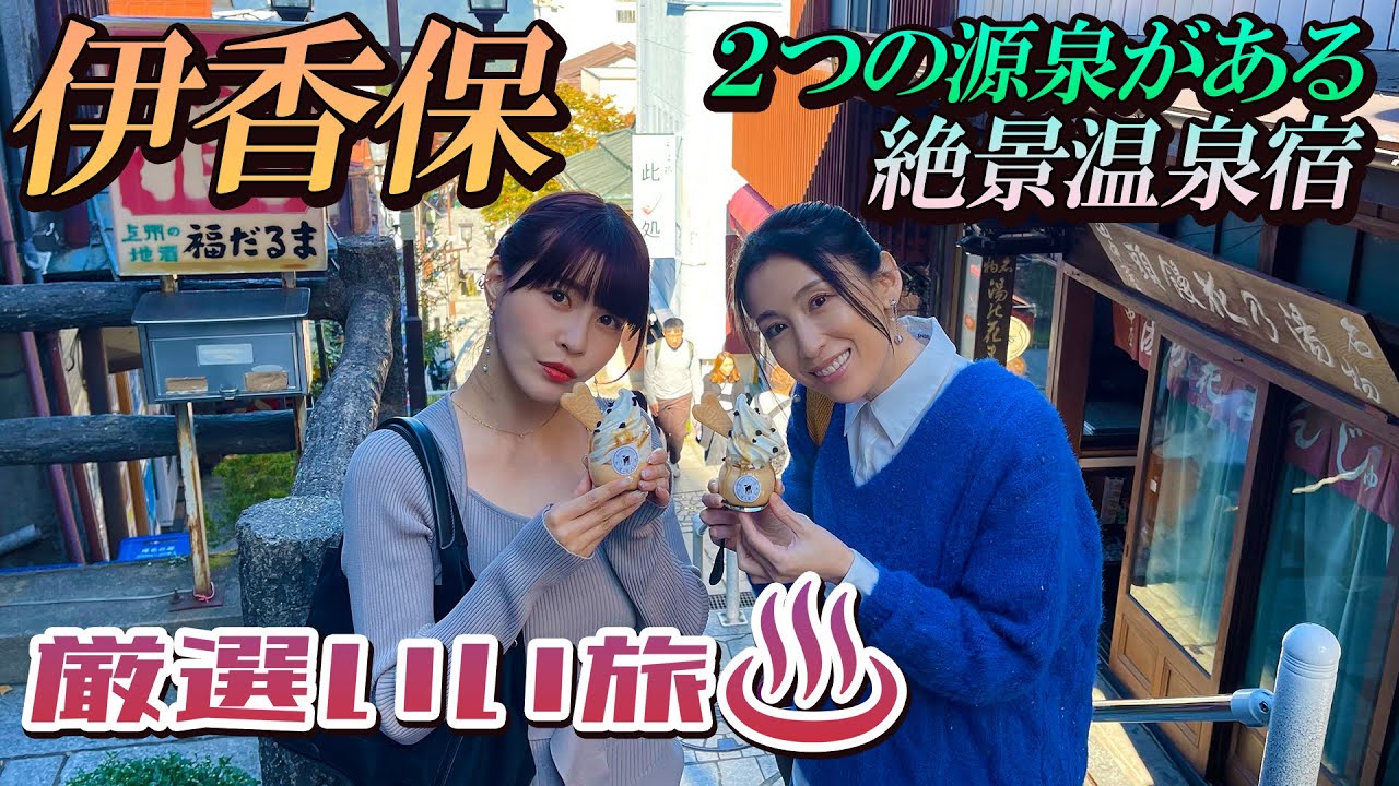 雛形あきこと岸明日香が群馬の人気温泉地「伊香保」で女性ふたり旅へ。伊香保の象徴である石段街も散策。そして、伊香保温泉の二つの源泉が楽しめる湯宿で至福の時間を過ごしました。 絶景を眺めながら、極上の湯に身を委ねます。群馬の名物料理や、館内で焼かれたパンも味わえるのが嬉しいポイントです。