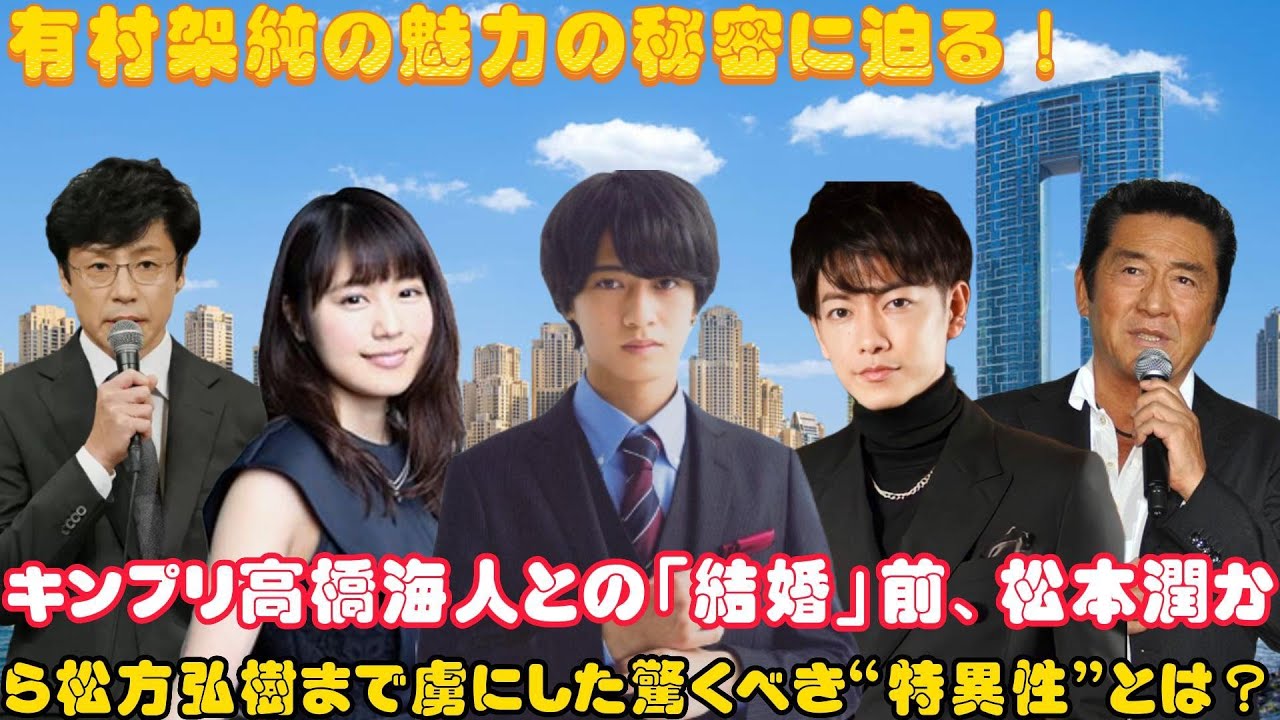 有村架純がキンプリ高橋海人との「結婚」前提交際で注目されています。彼女は、松本潤、佐藤健、東山紀之、そして松方弘樹など、多くの共演者を“ナチュラル共演者キラー”として虜にしました。この動画では、有村架純がなぜ“特異性”を持っているのか、その魅力の秘密を探ります。彼女の共演者たちを全員メロメロにした理由、そしてその背後にある驚くべき事実に迫ります。是非、彼女の魅力の核心に迫るこの動画をご覧ください。