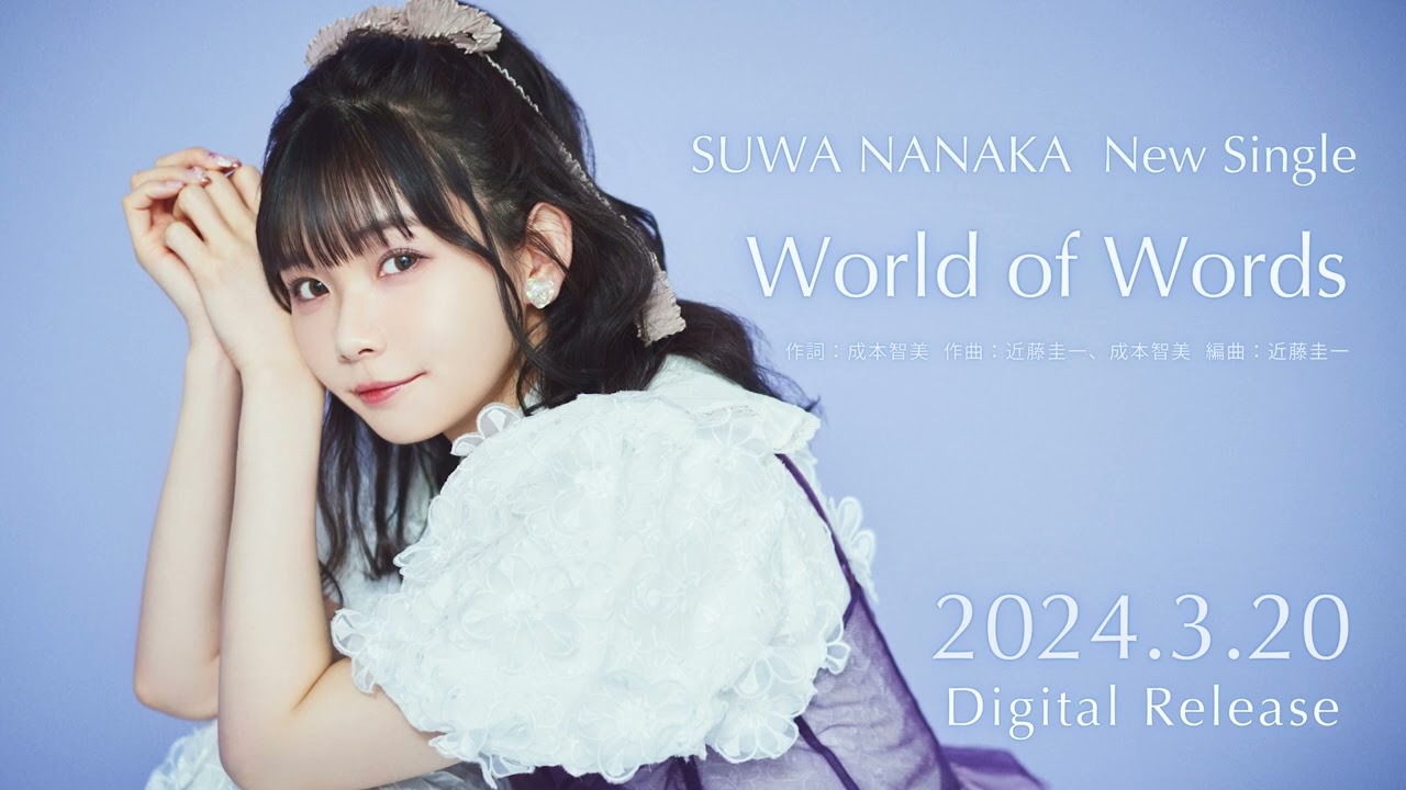 Music Official Site▶https://columbia.jp/suwananaka/ 2024/3/20配信 諏訪ななか デジタルシングル「World of Words」 <配信限定>COKM-44794World of Words 作詞/成本智美 作曲/近藤圭一、成本智美 編曲/近藤圭一#諏訪ななか #すわわ #WorldofWords animeAqoursUC7RMi15o0aQacJhxOc6LLmwWorld of Wordsすわななかすわわラブライブラブライブ!サンシャイン!!ワールド・オブ・ワーズワールドオブワーズ声優小倉唯松浦果南諏訪ななか