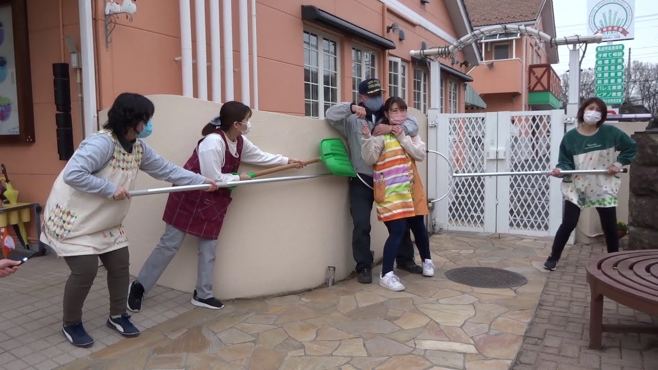 不審者が敷地内に入ってきてしまった場合、どのように対応するかを訓練しました。