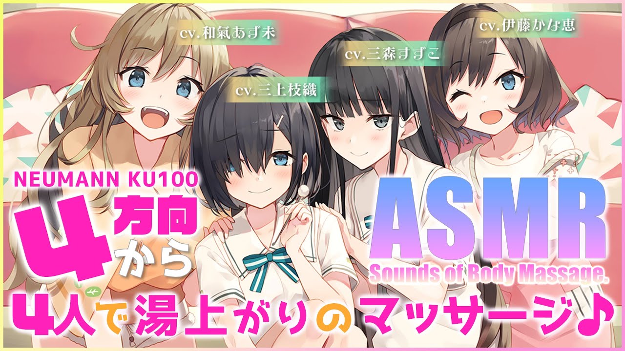 新作の『180秒で君の耳を幸せに出来るか?』シリーズより三上枝織さん、三森すずこさん、和氣あず未さん、伊藤かな恵さんがそれぞれ演じる4人のヒロインによる4方向からのマッサージシーンを大公開です!