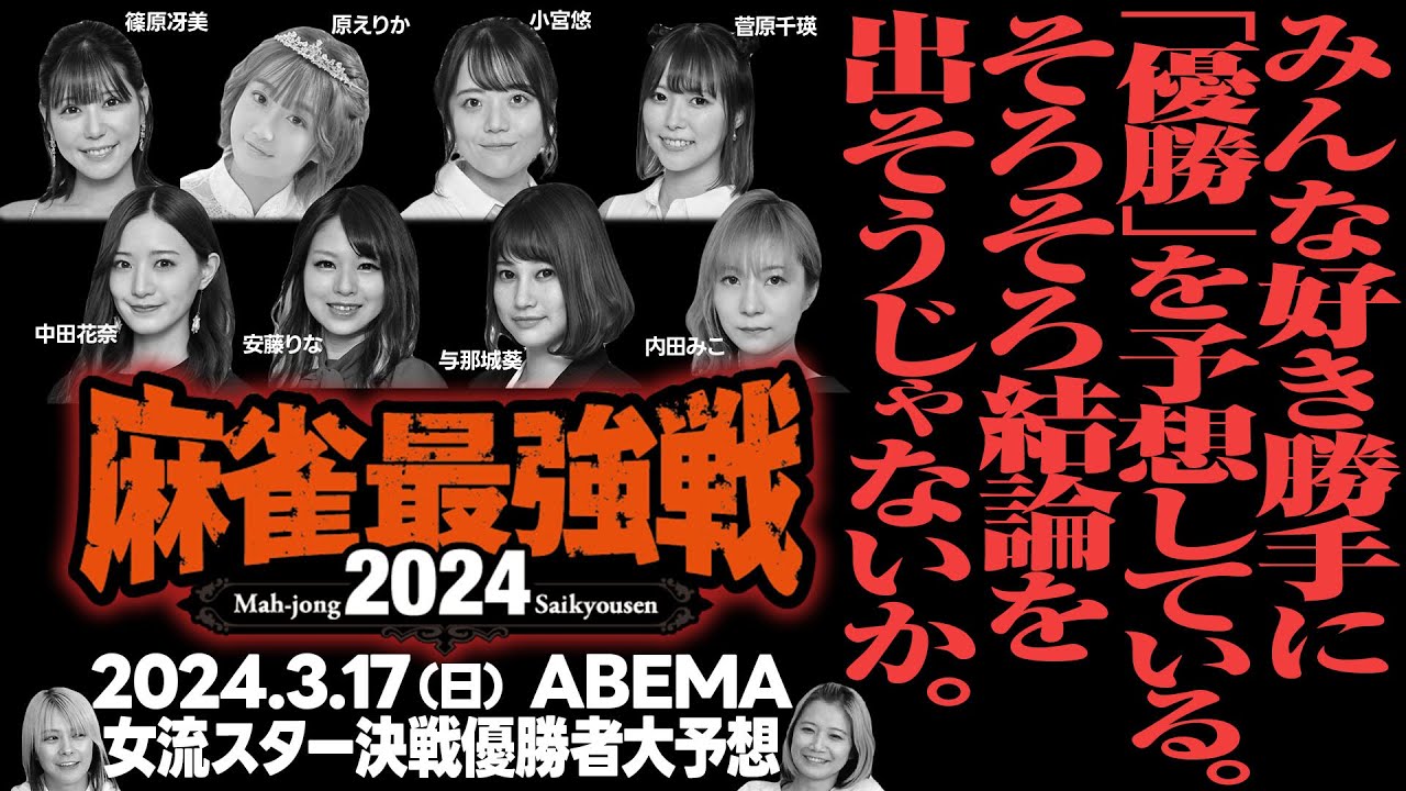 今年もやります麻雀最強戦2024各回優勝者大予想!ということで、明日3月17日(日)に迫った「女流スター決戦」の優勝者をるみあきが独自の見解で予想しちゃいます!今年はるみあきそれぞれの的中率を算出し、勝った方がご褒美、負けた方には罰ゲームを執行!?さらには見事予想が的中した場合はその方をゲストにお招きしちゃおうではないかという試みも!?概要欄に出場選手の情報がありますので、皆さんも一緒に予想して盛り上がりましょう(@_@)p!