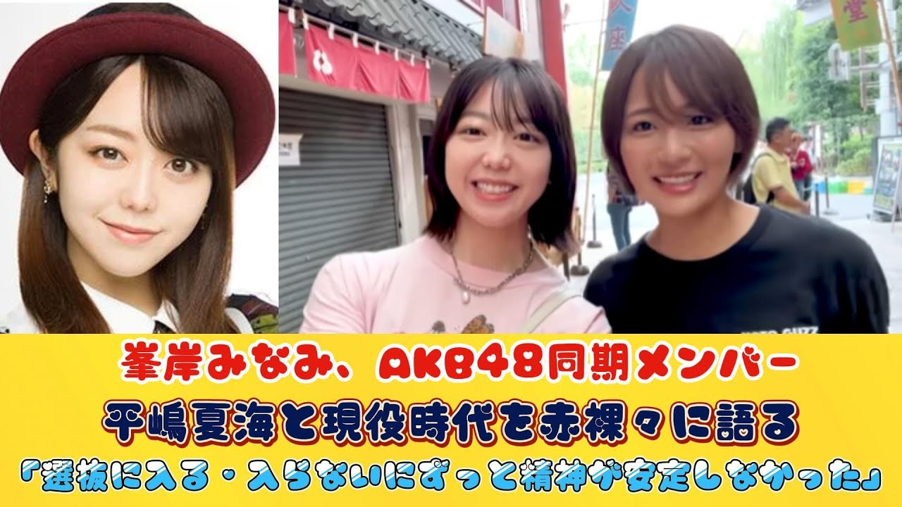 AKB48の元メンバーである峯岸みなみと平嶋夏海が、過去の活動時代について率直に語る特別なインタビューがここにあります。2人は、選抜入りというプレッシャーや不確実性について、そしてその期間中の精神的な苦悩について打ち明けます。彼らのアイドル活動の裏側に迫り、ファンと共有したい秘密や思い出についても話します。