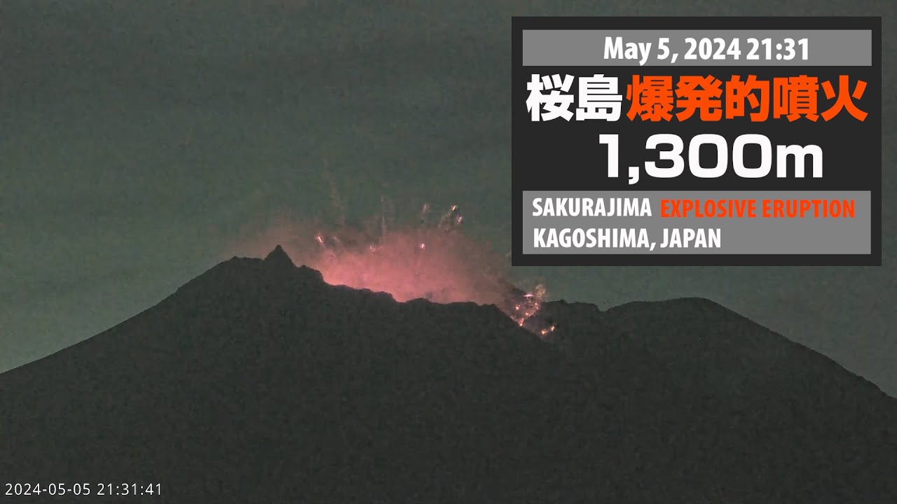 撮影日時: 2024年5月5日 5月5日 21時31分 爆発 噴煙高度火口上1300m 今年(2024年)14回目の爆発的噴火でした。 CameraC再生 ~00:52 CameraB再生 ~02:14 / Recording: May 5, 2024 21:31(JPT) 1300m This explosion was the 14th explosive eruption this year (2024) / #桜島 #鹿児島 #volcano #Japan Active Volcanojapankagoshimalive camsakurajimaVolcano噴火噴煙垂水市景観桜島桜島噴火活火山火山鹿児島県