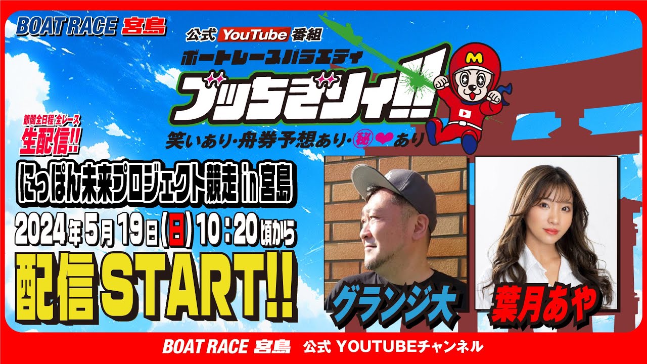 【ボートレース宮島 公式YouTube番組】 ボートレースバラエティ “ブッちぎりィ!!”【グランジ大&葉月あや】