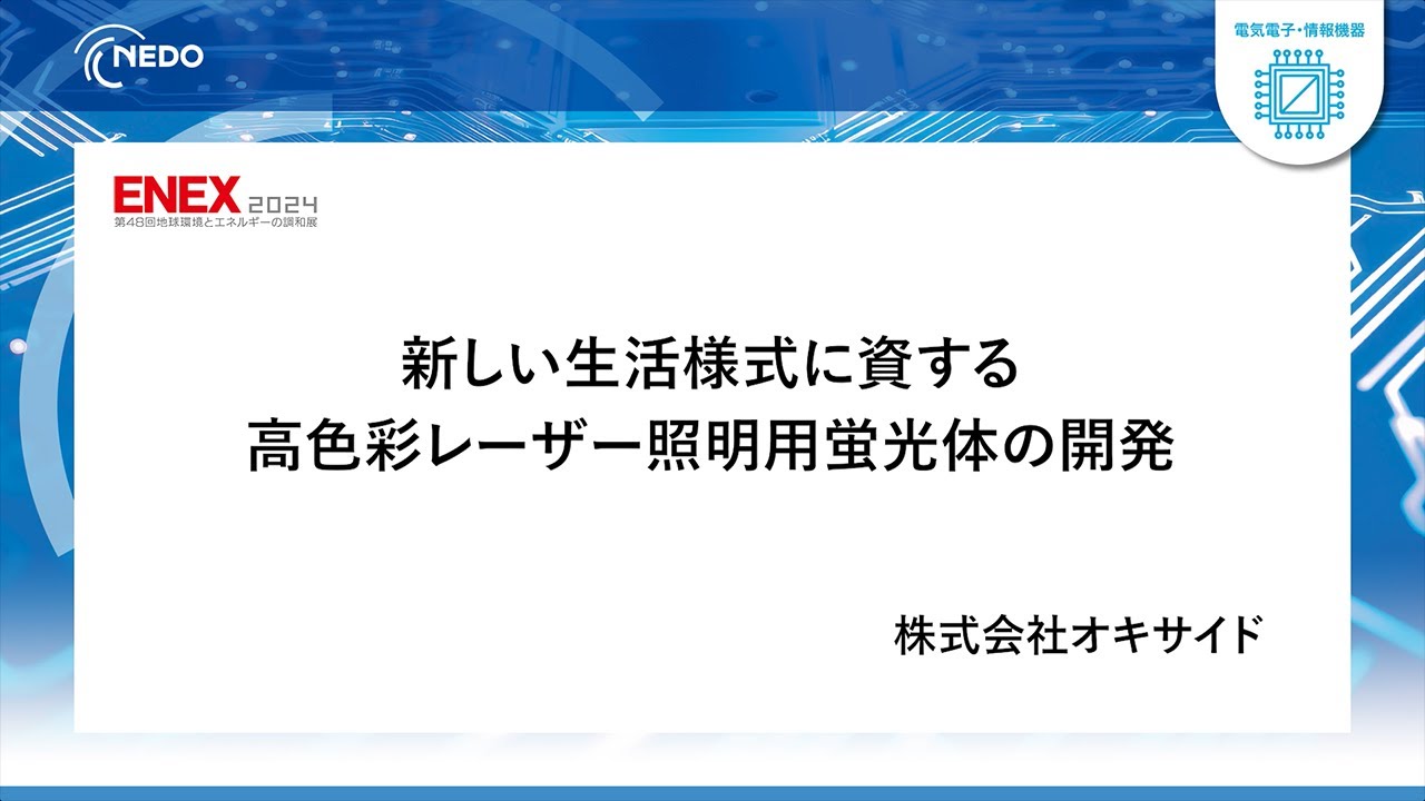 【ENEX2024】新しい生活様式に資する高色彩レーザー照明用蛍光体の開発 ―豊かな色彩と省エネ性を兼ね備えた低色温度・高色彩のレーザー照明を実現する蛍光体と蛍光体デバイス―