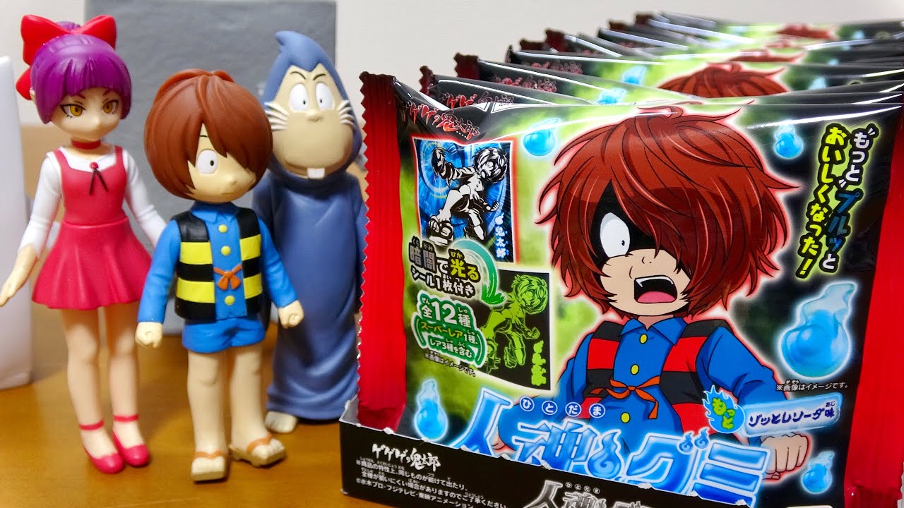 ゲゲゲの鬼太郎 新商品 暗闇で光るシールが入った 人魂グミ 闘いの記憶 1BOX 開封紹介!いきなりスーパーレア登場 Kitaro Gumi Candy