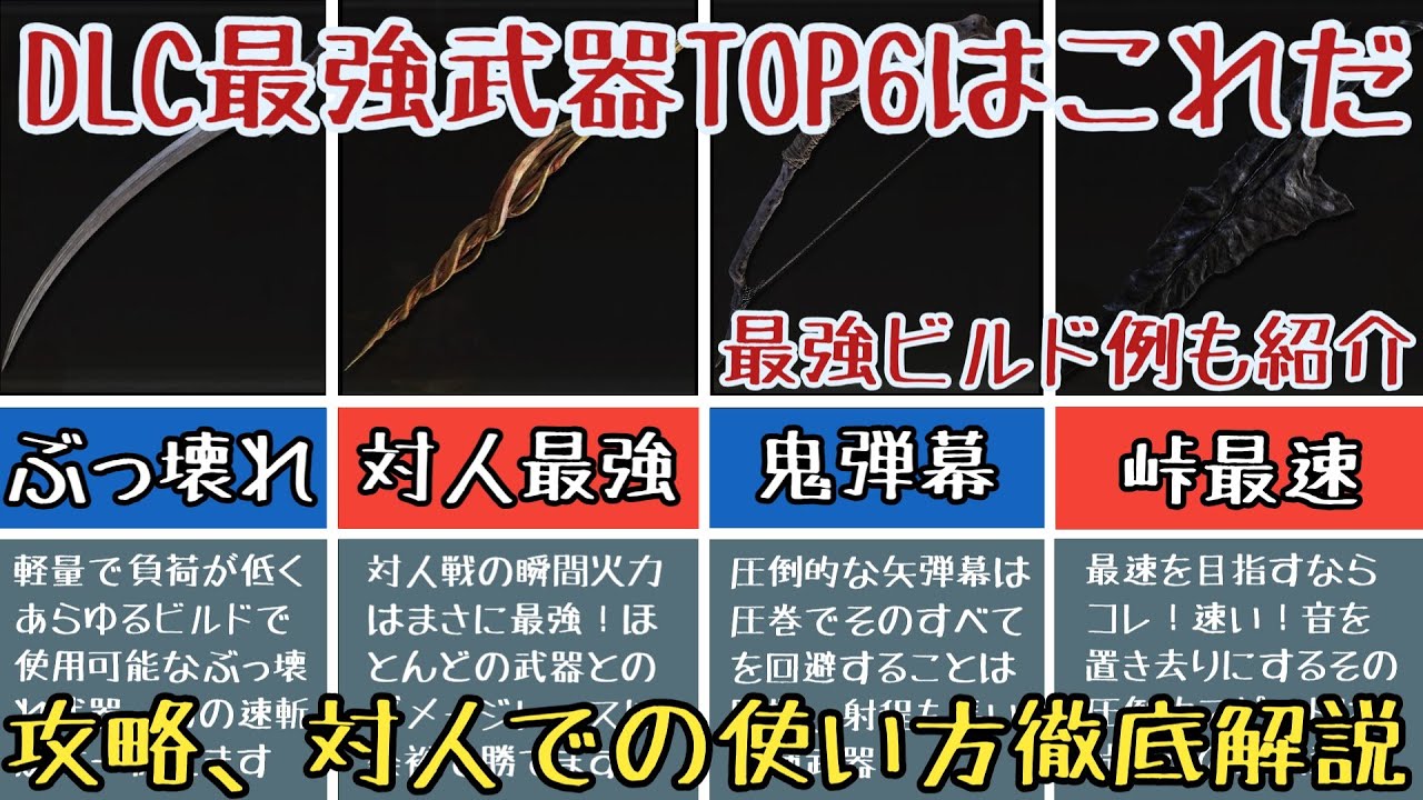 DLC武器は対人性能が高い武器が多い反面、攻略面では控えめで既存武器の方が効果的な場面が多い気がします。