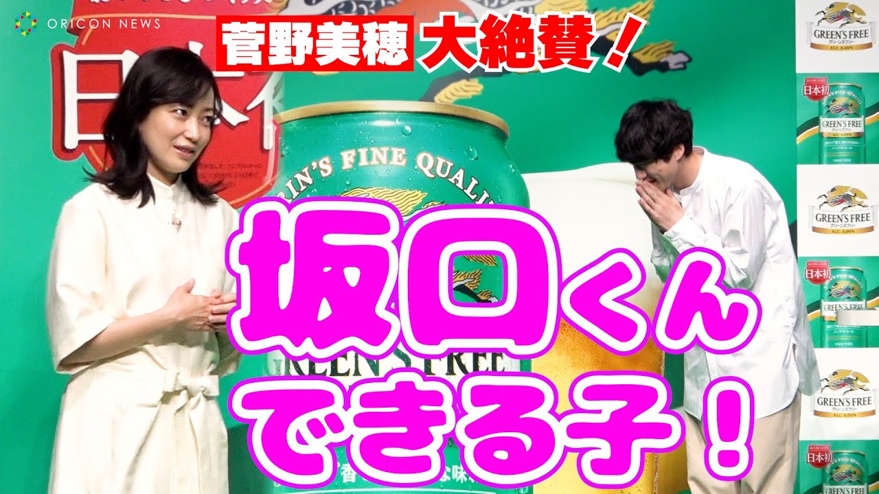 俳優の菅野美穂、坂口健太郎が22日、都内で行われたノンアルコール・ビールテイスト飲料『キリン グリーンズフリー』リニューアル発表会に参加した。