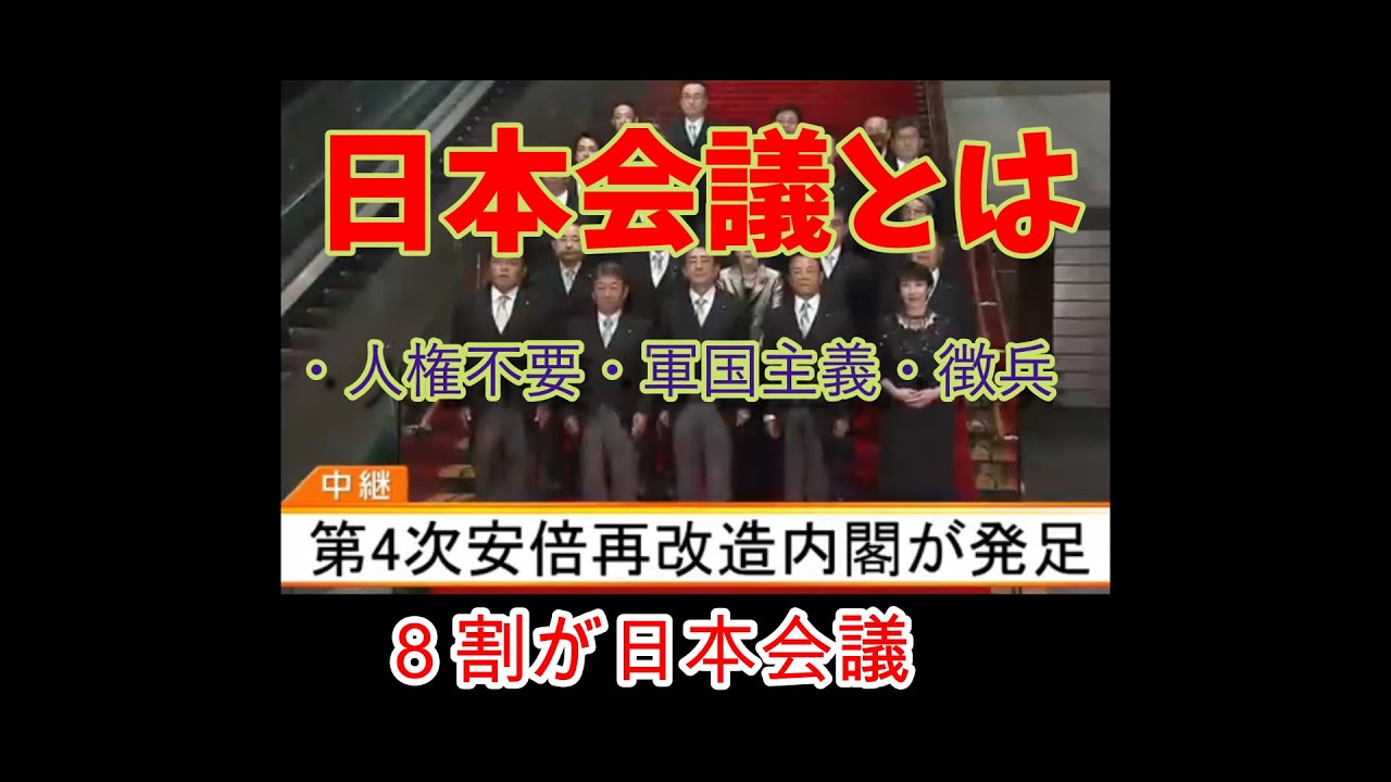 動画一覧チャンネル登録憲法改正を60年来の悲願に掲げる日本会議。彼らと安倍政権の繋がりを追ってみると、絶対に改憲なんてしてはいけないと感じた。 あと稲田朋美の歌が怖くて寝れない(´・ω・`) トーモーミー#日本会議#稲田朋美#安倍晋三#塚本幼稚園#改憲#憲法9条#緊急事態条項#国防軍#国民の生活が大事 #憲法9条NewsVideoまことしやかに囁かれる日本会議彼らの目的とは安倍政権との繋がりは何かと話題の稲田朋美も徴兵制改憲日本会議稲田朋美
