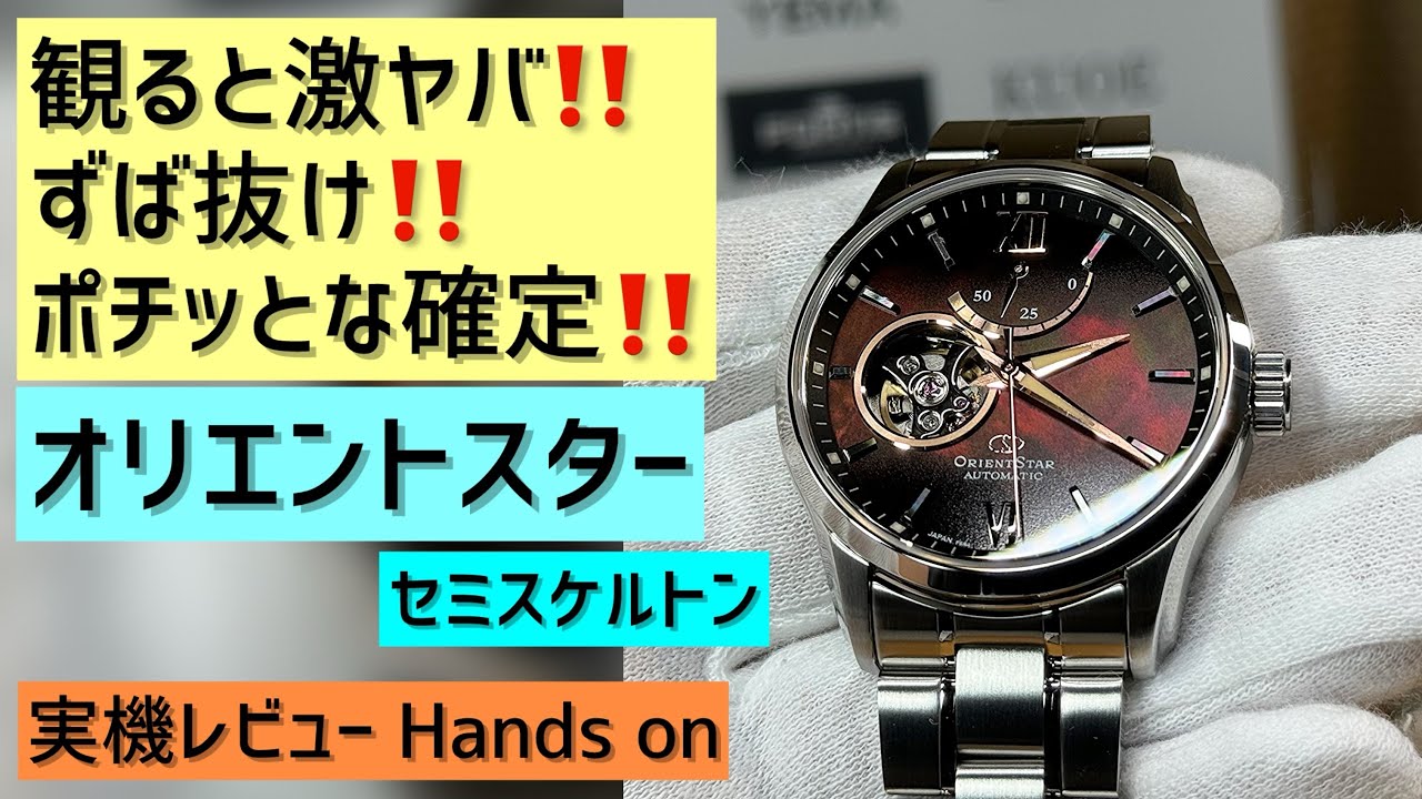 オリエントスター、セミスケルトン、マザーオブパールを使用した美しいダイヤル、
