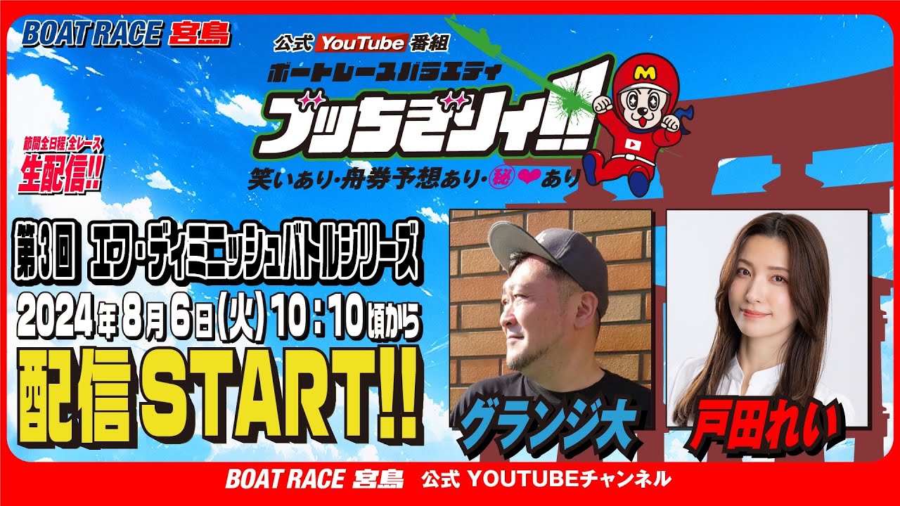 【ボートレース宮島 公式YouTube番組】 ボートレースバラエティ “ブッちぎりィ!!”【グランジ大&戸田れい】