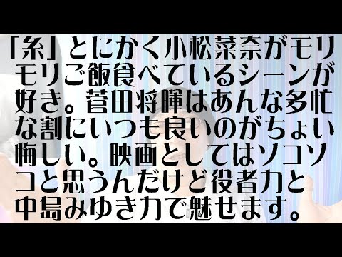 個人的には結構泣いたけど、映画の出来自体はあんまりいいとは思ってないんです。だけど菅田将暉、小松菜奈始め役者陣の熱演と、中島みゆき力でグイグイ引っ張ってる映画。旬の役者さんをお金払って見にいくのも映画。かな NewsVideoラブストーリー中島みゆき小松菜奈榮倉奈々瀬々敬久糸菅田将暉飯をかっこむ小松菜奈だけでも料金分糸の感想
