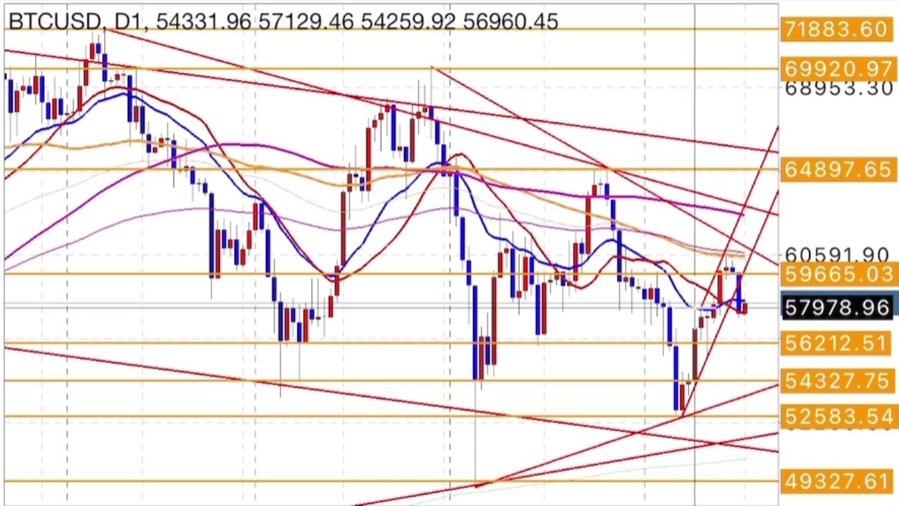 仮想通貨FX(暗号資産)ビットコイン(BTCUSD)最新予想(2024年9月17日〜来年)今後の見通し。チャートテクニカル分析の真髄を初心者にわかりやすく解説。週足トレンドライン、日足逆三尊天井仮他