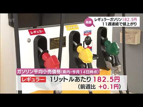 県内では11週連続の値上がりとなっていて、今月に入ってからは180円台が続いています。
