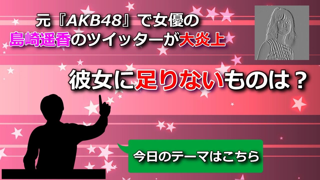今回は、元『AKB48』で女優の島崎遥香(ぱるる)のツイッターが大炎上している件を取り上げます。
