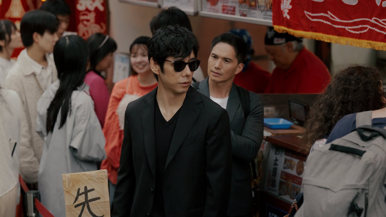 2人が並んでいる、行列のできるたこ焼き屋さんで「ダイワマンならどうするだろう?」と市原さんへ問いかけ、行列の先頭から最後尾へ向かう西島さん。
