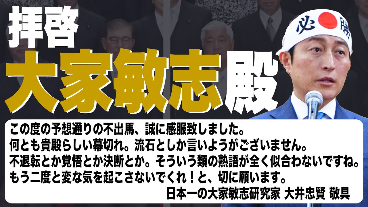 今回は、衆院福岡9区_拝啓 大家敏志殿 この度の予想通りの不出馬、誠に感服致しました。(#228)です。
