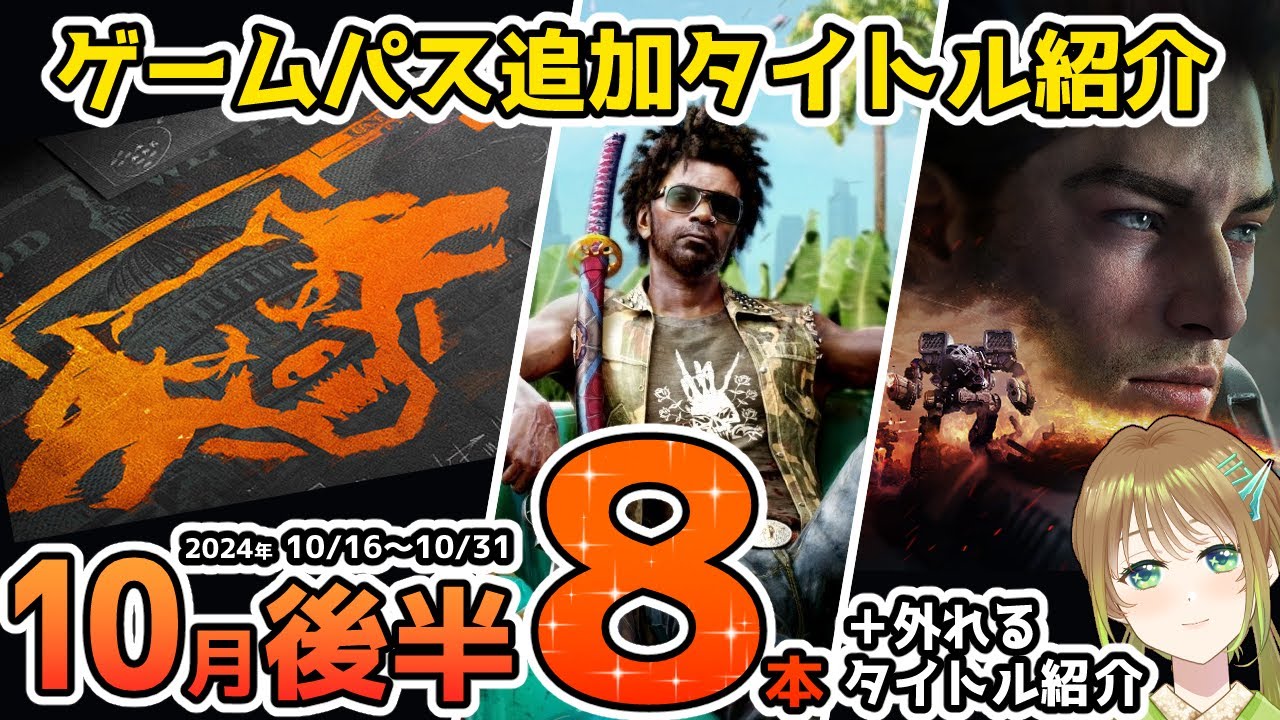 【Xbox最新情報】ゲームパス2024年10月後半追加タイトル8本&ゲームパスから外れるタイトル紹介【Xbox Game Pass】