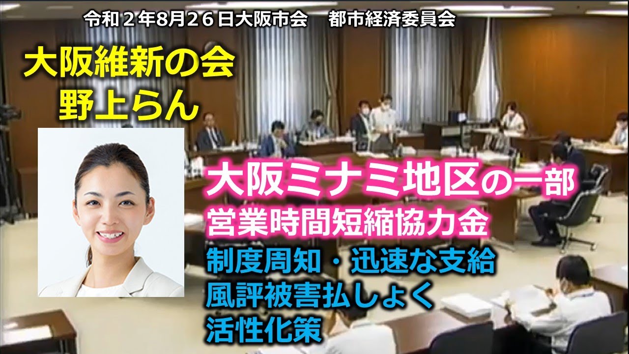 #とこチャン!【#大阪市会】#野上らん 20200826大阪市会 都市経済委員会