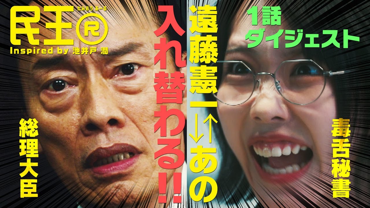 火曜よる9時から放送中!『半沢直樹』シリーズなどで知られる作家・池井戸潤原作の『民王』より発想を受け、2015年の放送から9年ぶりに《Renewal》した『民王R』第1話が5分でわかる!SPダイジェスト!