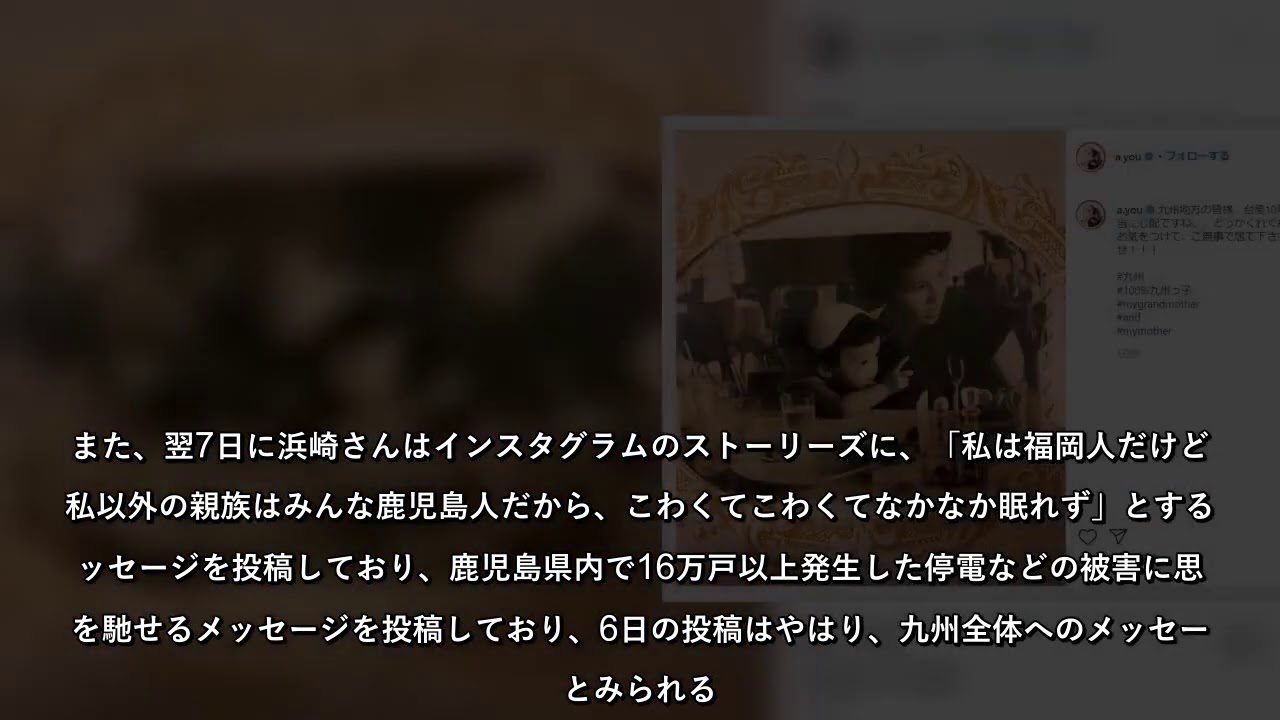 #歌手の浜崎あゆみさん(41)が2020年9月6日にインスタグラムに投稿した1枚の写真がファンの間で話題だ「九州地方の皆様、台風10号本当に心配ですねどうかくれぐれもお気をつけて、ご無事で居て下さいませ!!!」と、励ましのメッセージを投稿した浜崎さん同日時点で九州地方は台風10号の接近により厳戒態勢が敷かれていたが、それに呼応する形で浜崎さんも台風への警戒を呼び掛けた形だ「私は福岡人だけど