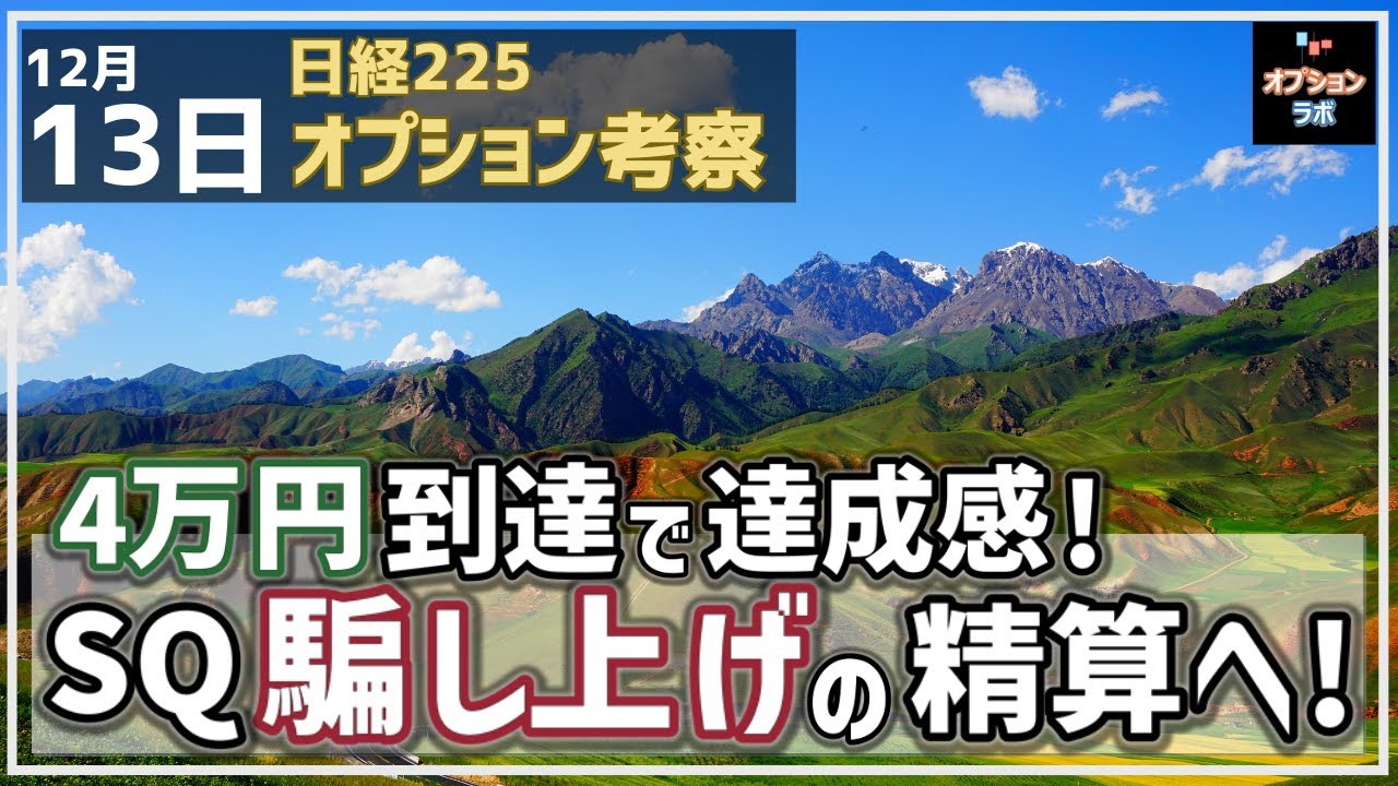 【日経225オプション考察】12/13 日経平均 4万円到達で達成感! SQ明けに騙し上げのツケが!