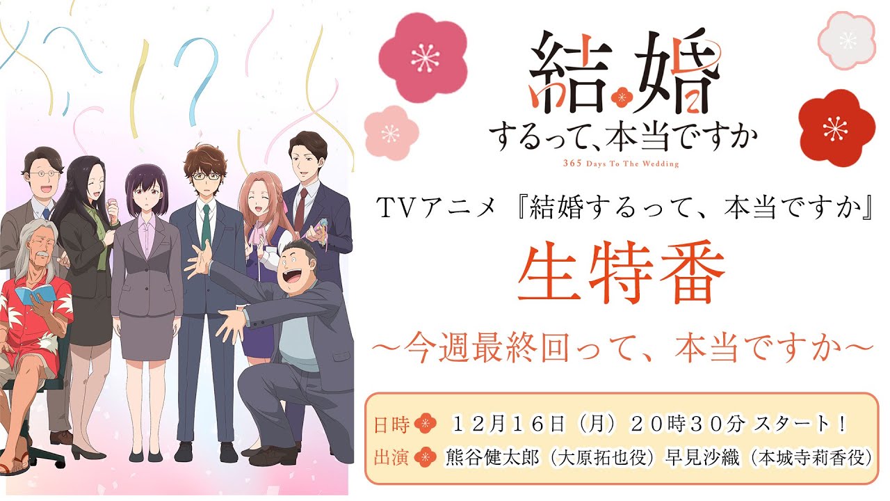 毎週木曜日23時30分より放送中のTVアニメ「結婚するって、本当ですか」最終回直前特番!