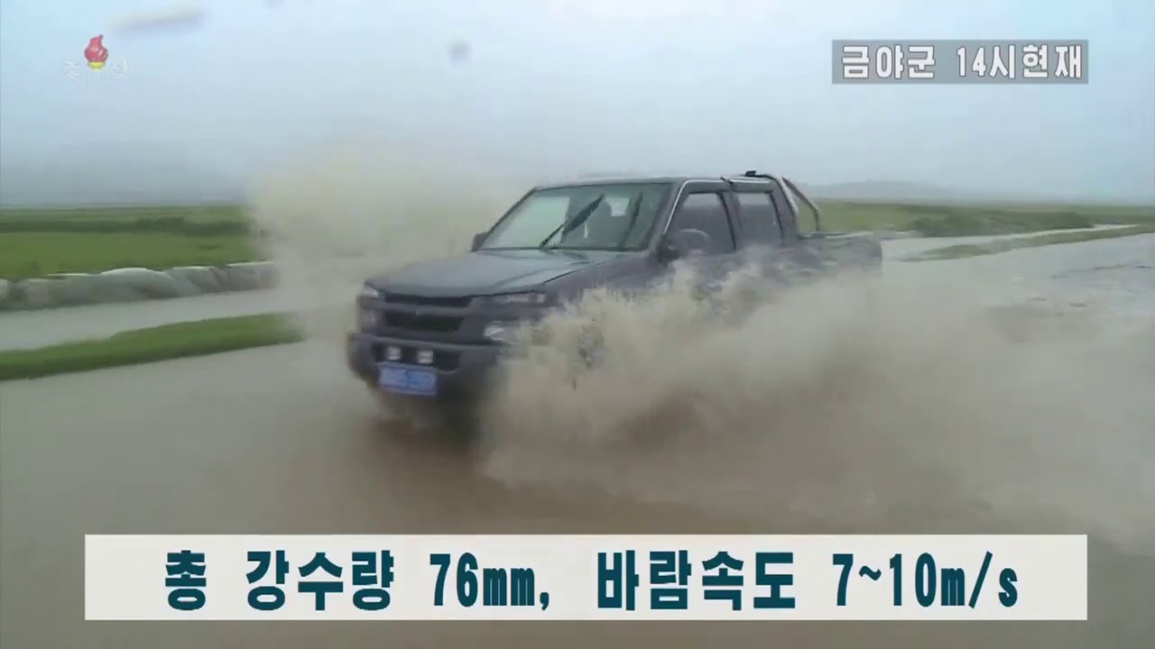 2020年9月7日15時03分、「朝鮮中央TV」で放送された台風10号情報。クムヤ郡、ハムフン市の現地レポート。日本語字幕付き。