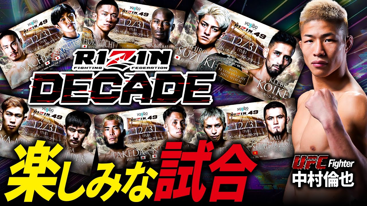UFCファイターの中村倫也が、2024年12月31日(火)に行われる毎年恒例の大晦日のRIZIN DECADEの対戦カードの中から特に楽しみな試合について語ってくれました。