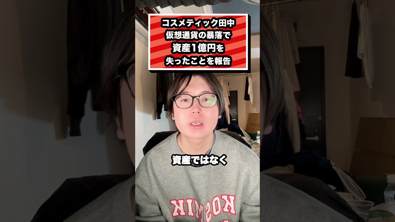 コスメティック田中 仮想通貨の暴落で 資産1億円を 失ったことを報告#コスメティック田中#ビットコイン#投資#ユーチューバー#仮想通貨