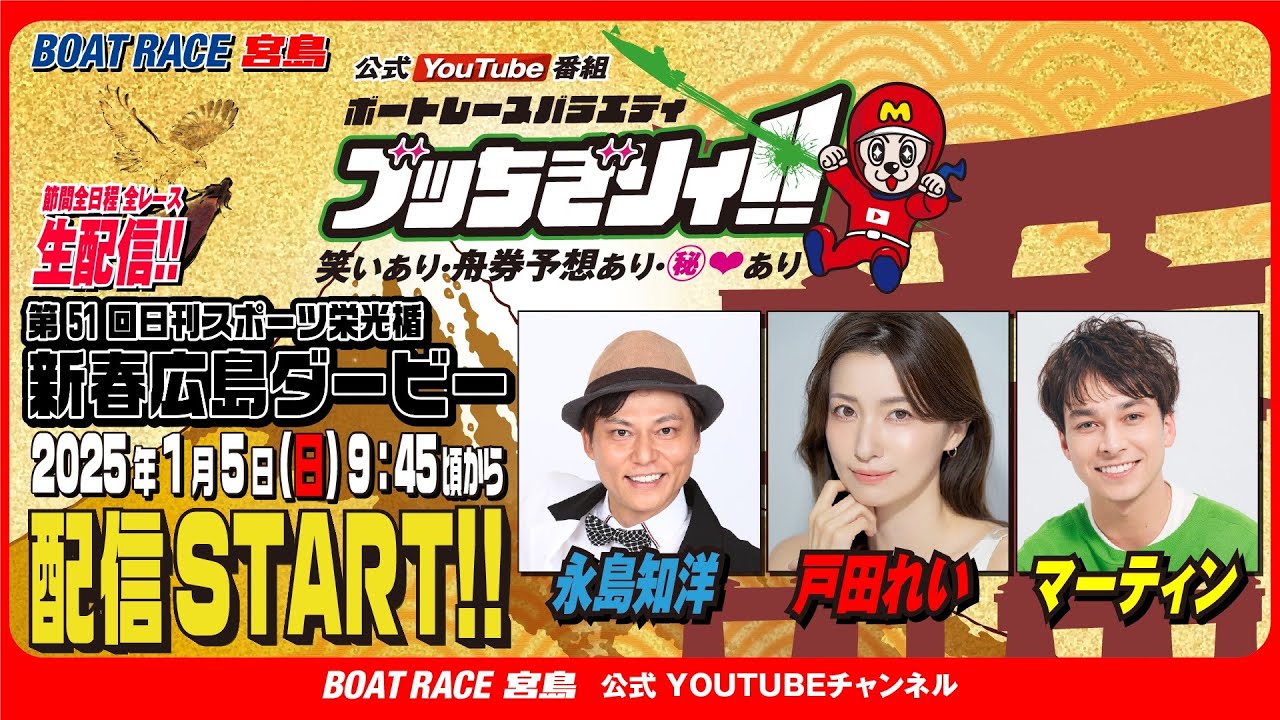 【ボートレース宮島 公式YouTube番組】 ボートレースバラエティ “ブッちぎりィ!!”【永島知洋&戸田れい&マーティン】