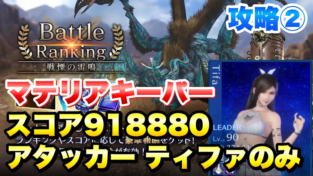 【FF7EC】バトルランキング 戦慄の雷鳴 攻略② マテリアキーパー アタッカー ティファのみ スコア918880 ステージレベル200【エバクラ】ファイナルファンタジー 7 エバークライシス 攻略