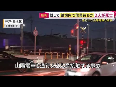 神戸市垂水区の踏切で、電車と通行人が衝突する事故があり、2人が死亡しました。