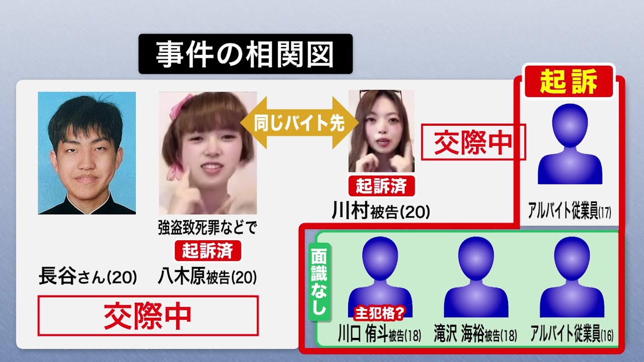 この事件では、長谷さんと交際していた八木原亜麻被告(20)、友人の川村葉音被告(20)もすでに起訴されています。