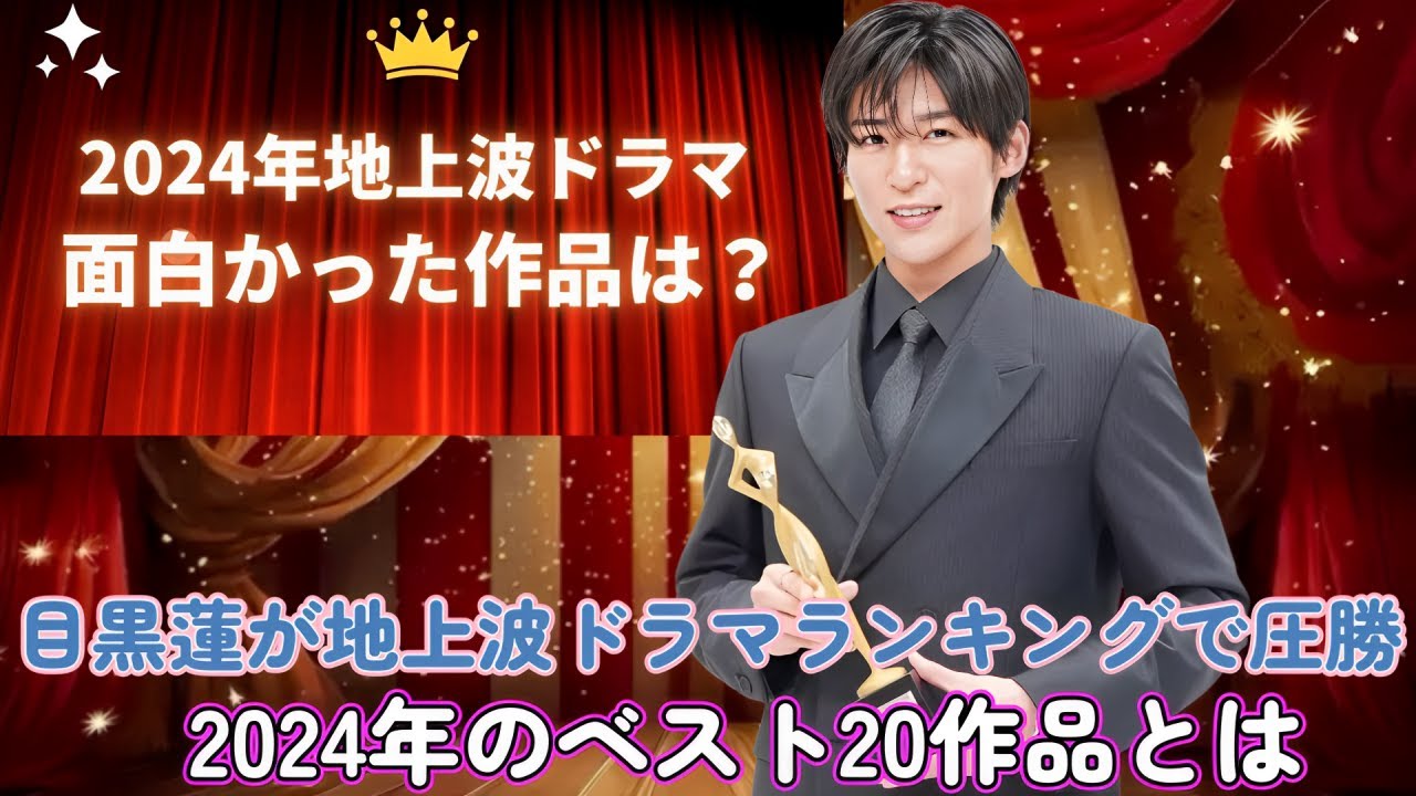 2024年に放送された地上波ドラマの中で、視聴者が選んだ「最も好きな作品ランキング【ベスト20】」が発表されました!なんと目黒蓮さんが出演した作品が圧倒的な支持を集め、堂々の1位を獲得!この動画では、ランキング全体の詳細や目黒蓮さん主演作がこれほど愛された理由を徹底解説します。