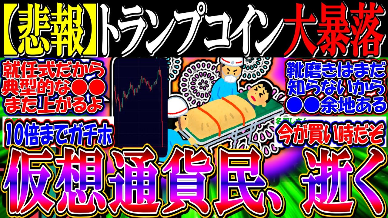 【悲報】トランプコイン大暴落で仮想通貨民、逝く【2ch仮想通貨スレ/お金/暗号資産/$TRUMP/メラニアコイン/就任式/BTC/ビットコイン/SOL/ソラナ/ETH/XRP/イーロンマスク】