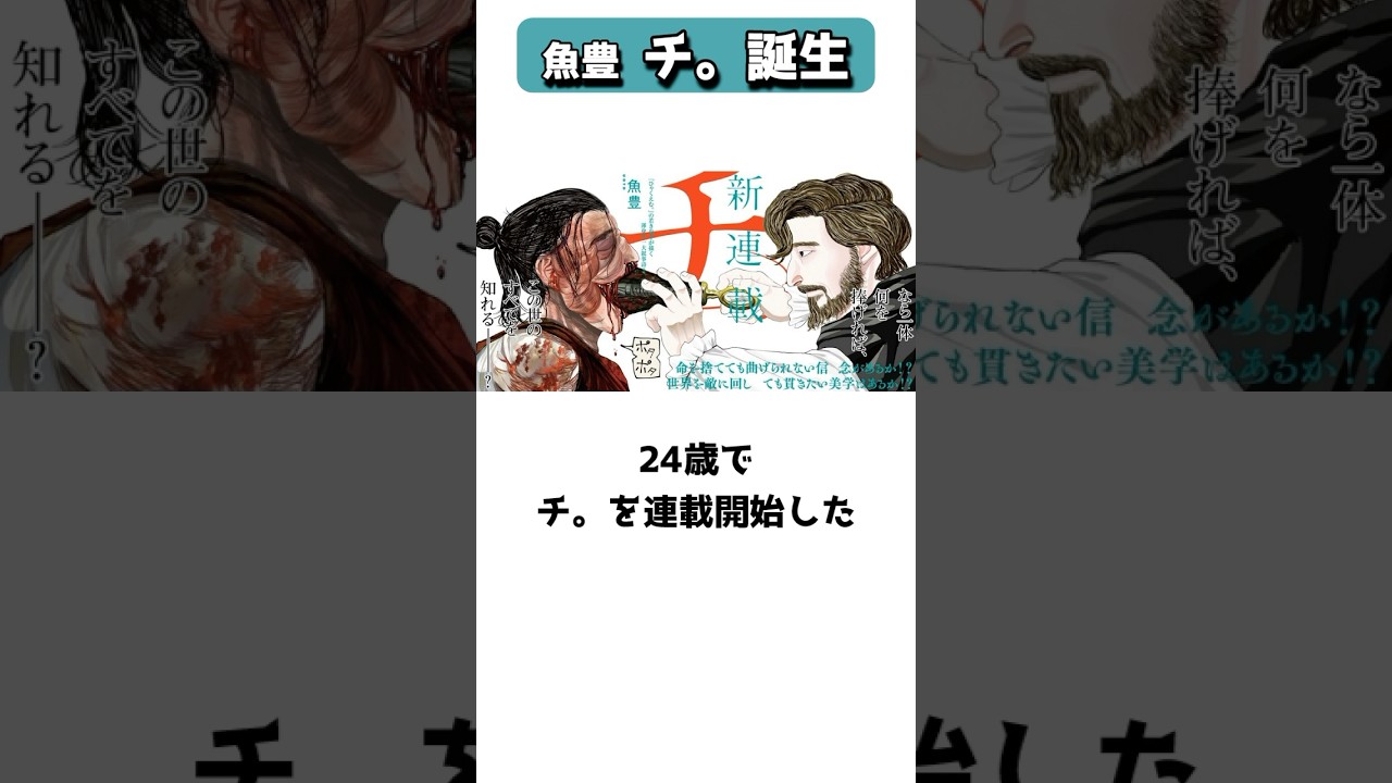 徹底的に作り込まれた超大作「チ。-地球の運動について』の作者魚豊 #shorts#チ。 #魚豊 #漫画家 #アニメ #地動説 本チャンネルでは以下の音声を使用させて頂いております。 ・VOICEVOX:四国めたん animeAnime 2024 Autumnアニメアニメ化チ。チ。ー地球の運動についてービッグコミックスピリッツひゃくえむマガジン新人漫画賞マンガマンガワン佳作千代田修平地動説地球の運動について小学館担当編集新人漫画家漫画漫画家編集者魚豊