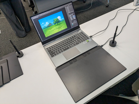 Wacom Intuos Proの報道者向け発表会では、イラストレーターの吉田 誠治氏がゲストとして登壇し、本製品の使用感を語った。吉田氏は、本製品のダイヤルキーを特に気に入ったと話し、従来の静電式タッチホイールで発生していた誤操作の心配がなく直感的に操作できると高く評価した。