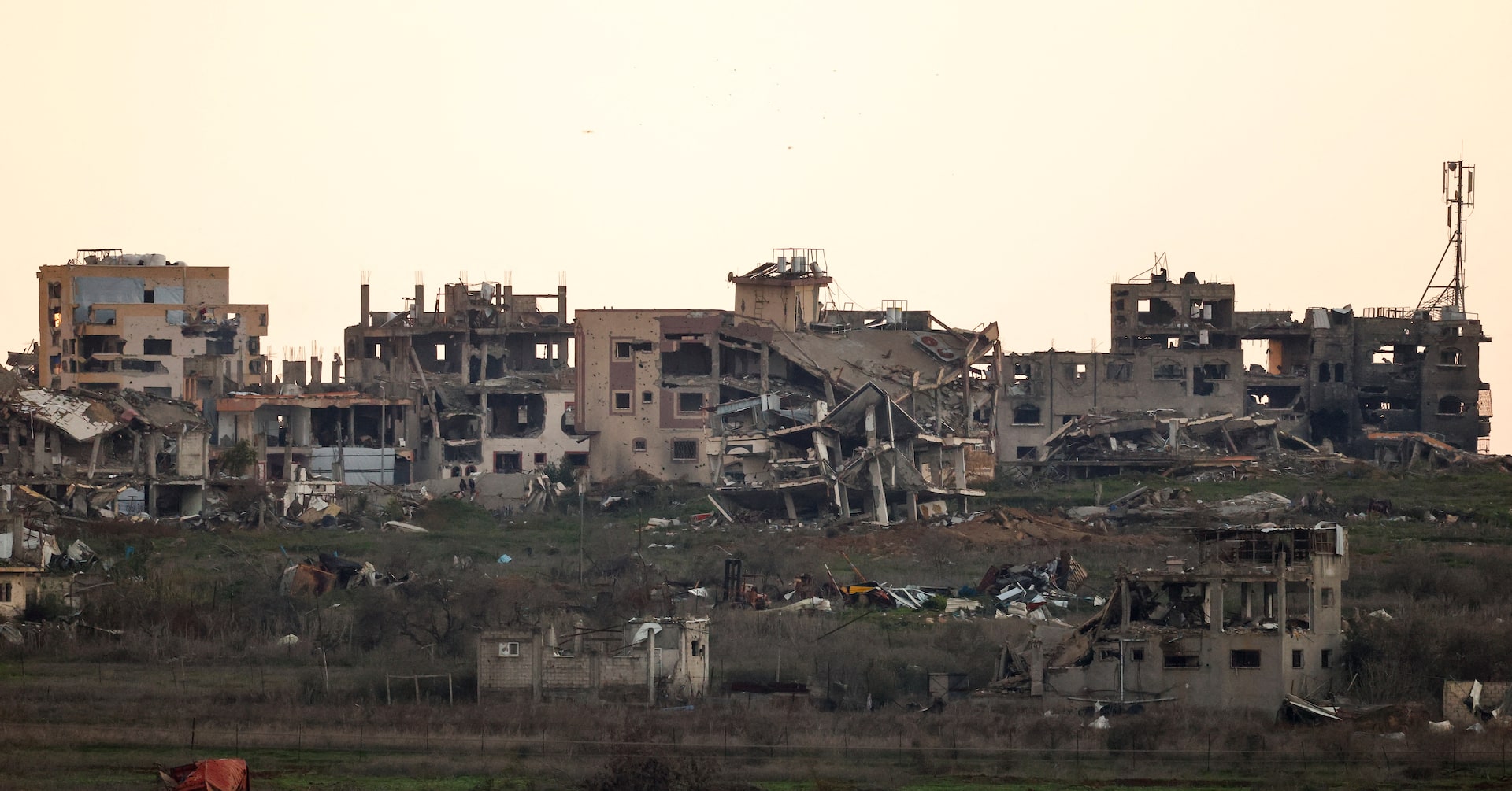 パレスチナ自治区ガザのイスラム組織ハマスの報道官は13日、イスラエルとの停戦合意が崩壊するのは望んでいないと述べた。写真はガザ北部。イスラエル側から12日撮影(2025年 ロイター/Amir Cohen)