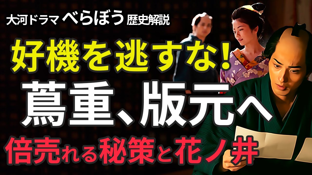 べらぼう歴史解説7【 花ノ井に救われ版元に】版元への好機を逃すな!倍売れる吉原細見を作るためにしたこととは?またしても版元を阻まれそうになった蔦重、救ったのは花ノ井だった!大河ドラマをより楽しもう!