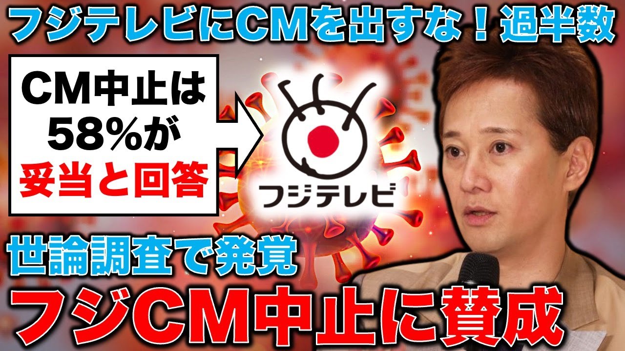 厳しい世論!フジテレビへCM取りやめ「妥当」は58%。毎日新聞の世論調査で発覚。更におぞましい事実も・・・ジャーナリスト今井一さん・元博報堂作家本間龍さんと一月万冊