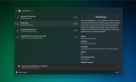 「Windows Terminal」の開発者と協力して、「WinGet」パッケージをインストールする機能が「PowerToys」で開発中