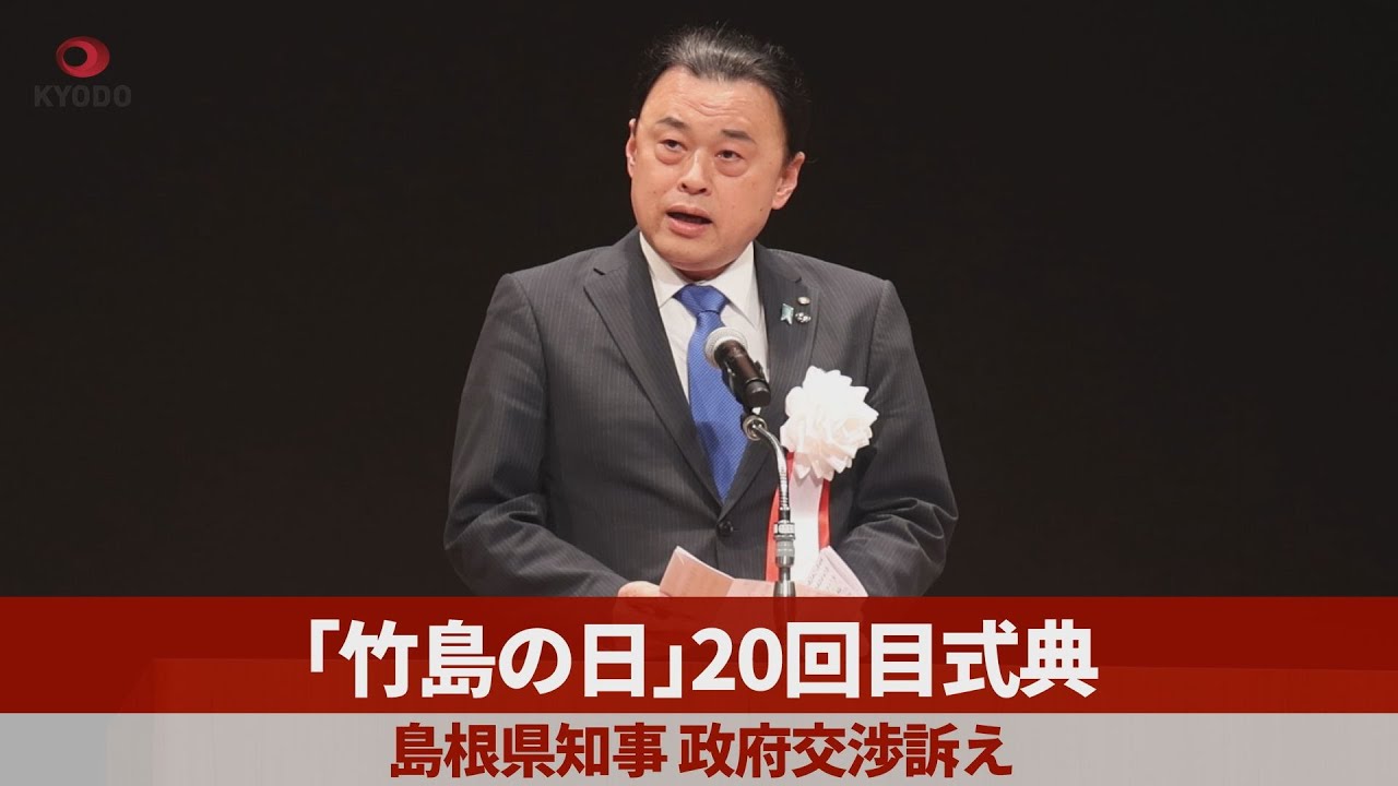 「竹島の日」20回目式典 島根県知事、政府交渉訴え 日本と韓国が領有権を主張する竹島(島根県隠岐の島町、韓国名・独島(トクト))の問題解決に向けて、同県は22日、条例で定めた「竹島の日」に合わせて20回目の式典を松江市で開催した。丸山達也知事は「韓国が竹島を不法占拠してから70年以上がたった」と指摘。「領土問題は国家間の問題で、政府レベルの話し合いが不可欠だ」と外交交渉による解決を訴えた。#竹島の日 #竹島 #独島 #領土問題 #丸山達也知事 #島根県 KYODO NEWSNews丸山達也今井絵理子内閣府政務官共同通信島根県独島知事竹島竹島の日韓国領土問題