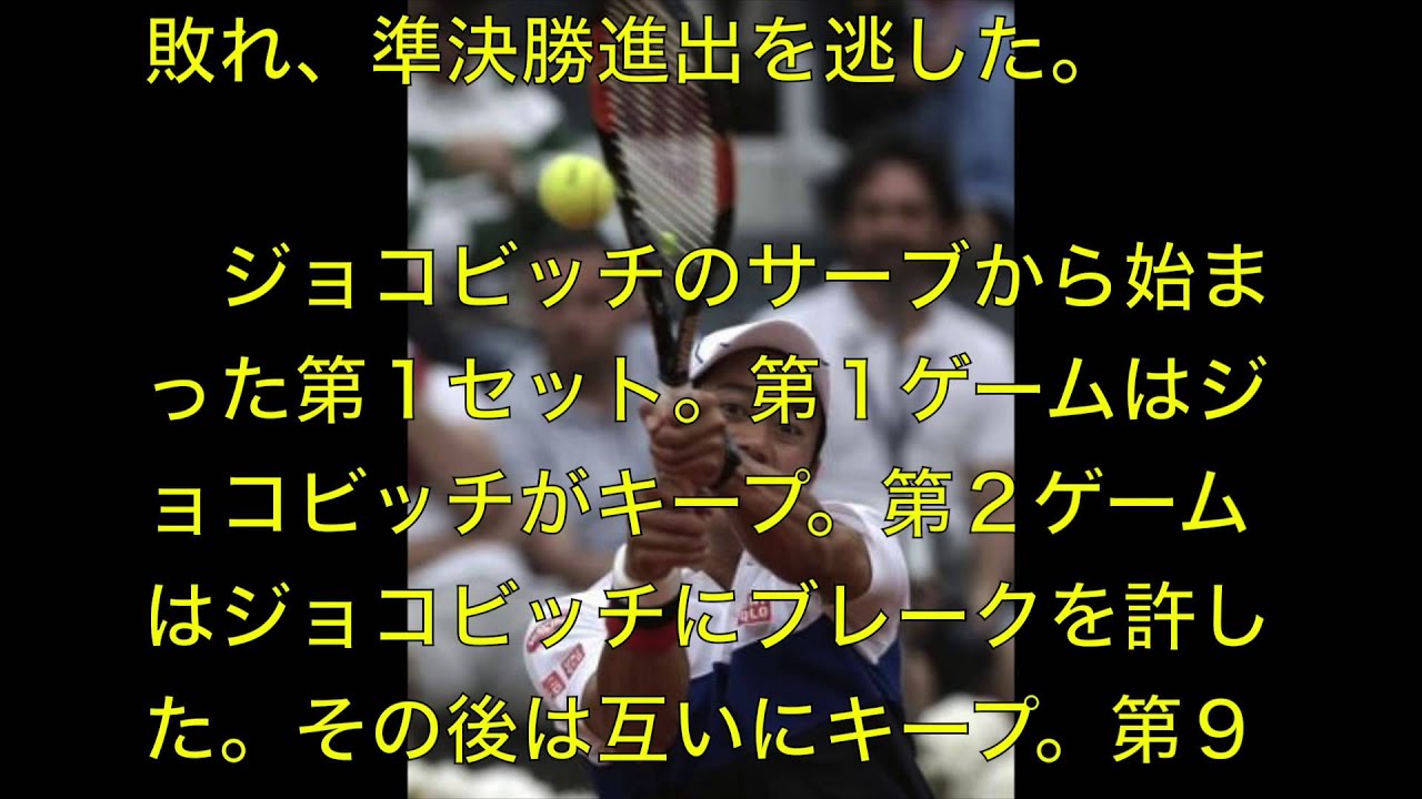 錦織は序盤から積極的なプレーを続けたが、ショットがネットに阻まれるなどミスが目立った。ジョコビッチはさすがの安定感を見せ、ラリーでも精度の高いストロークで錦織のミスを誘った。