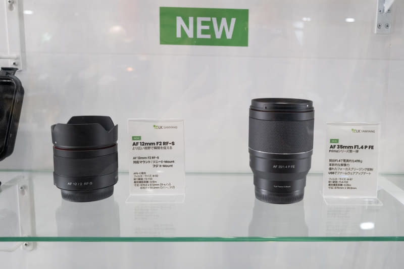 最新の製品はこの2本。「AF 12mm F2 RF-S」はAPS-C用広角レンズにRFマウント用が加わる。「AF 35mm F1.4 P FE」(ソニーE用)は、“第3世代”という新レンズシリーズ「Prima」の1本目となる