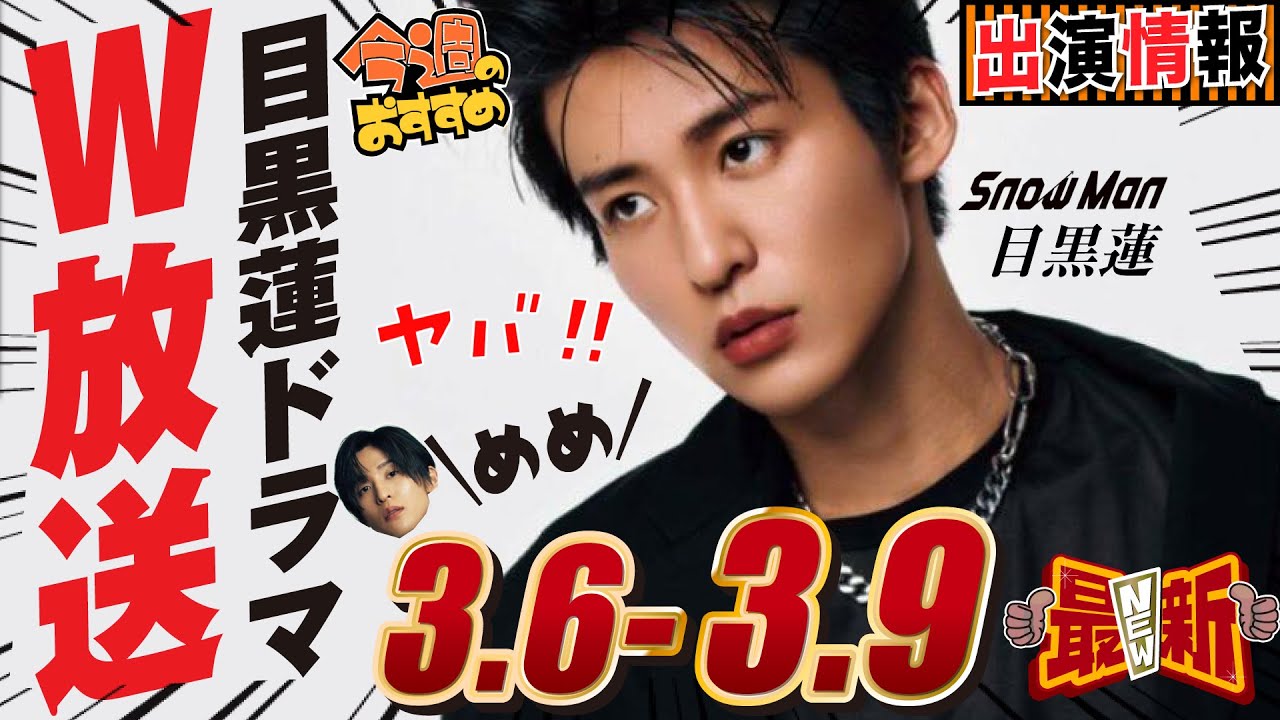 Snow Man 目黒蓮 出演情報🖤 2025年3月6日~3月9日めめドラマWで再び【蓮絡網】silentの文章が「海のはじまり」のママになってます・・・ごめんなさい🙇♀️ SnowManニュースSnowMan予定SnowMan出演情報それSnow Manにやらせて下さい目黒蓮